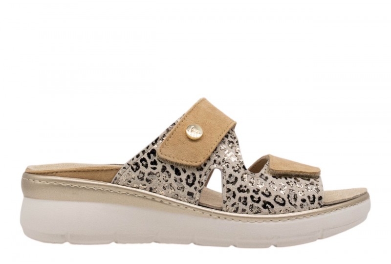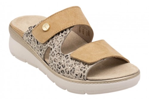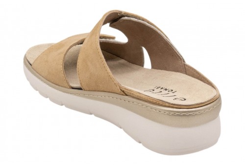 ELITE TOMASI ciabatta PFA-AVAYA CAMOSCIO PPF GIALLO. Ciabatta con zeppa realizzata in morbida pelle con fasce regolabili con strappo.