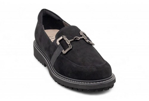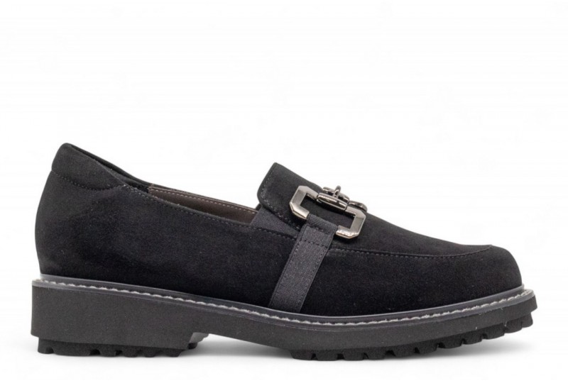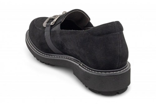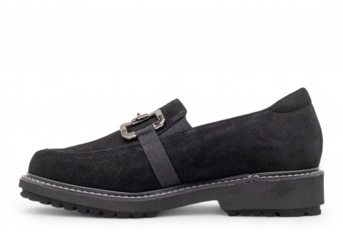 ELITE TOMASI MOCASSINO LEANDRA IN CAMOSCIO. Mocassino donna realizzato in camoscio. Accessorio frontale. Calzata ampia e comoda. Plantare estraibile. COLORE: NERO