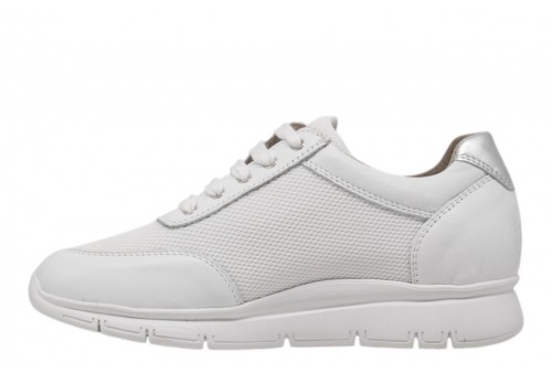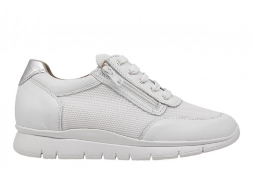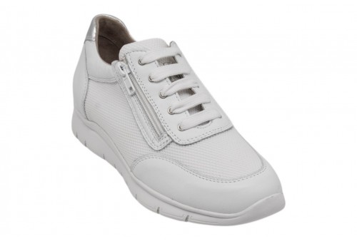 ELITE TOMASI PFA-RUNNING NAPPA PFF BIANCO. Sneaker modello running in morbida nappa con zip laterale per facilitarne la calzata. Spoiler in pelle argento.