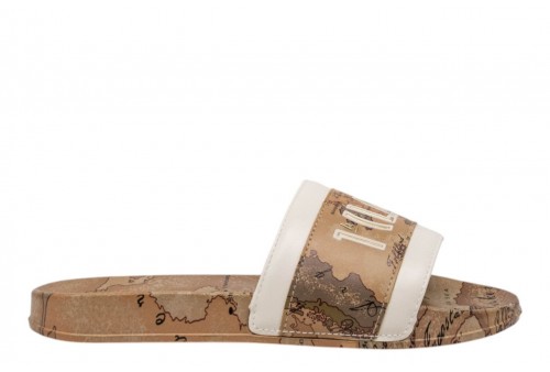 ALVIERO MARTINI SLIDE 2499/1904/X013 WHITE/BEIGE GEO. Slide donna realizzata in 100% pu con maxi fascia logata. Caratterizzata da sottopiede con stampa geo.