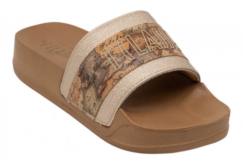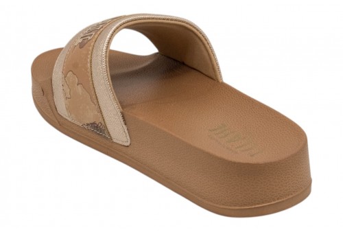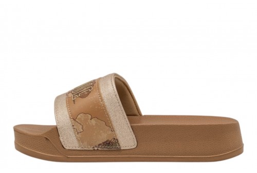 ALVIERO MARTINI SLIDE 2504/0513/X124 PLATINUM/BEIGE . Slide donna realizzata in 100% pu con maxi fascia logata. Caratterizzata da sottopiede platform.