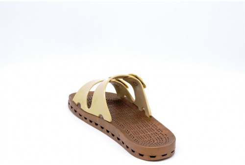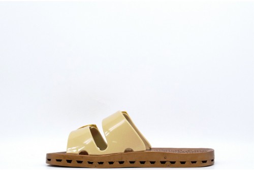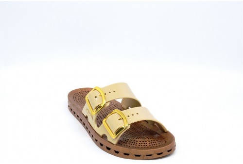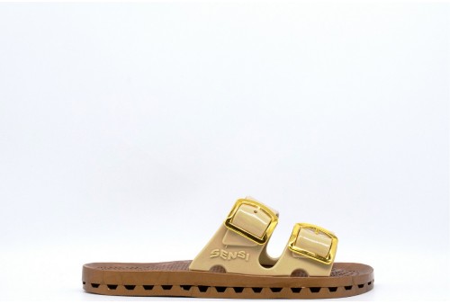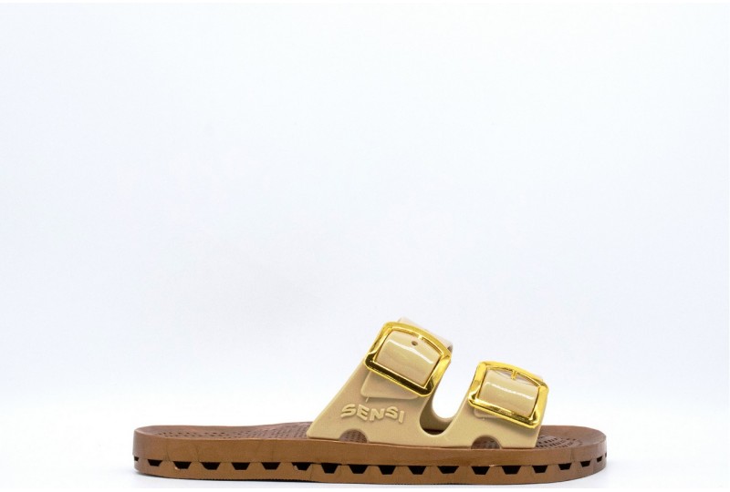 SENSI Ciabatta in gomma Jolla Prestigio. Ciabatta in gomma 100% riciclabile con tomaia a doppia fascia in vernice e fibbie per regolarne l'ampiezza. Fondo in gomma con canali di deflusso e sottopiede forato per una maggiore traspirabilità.
