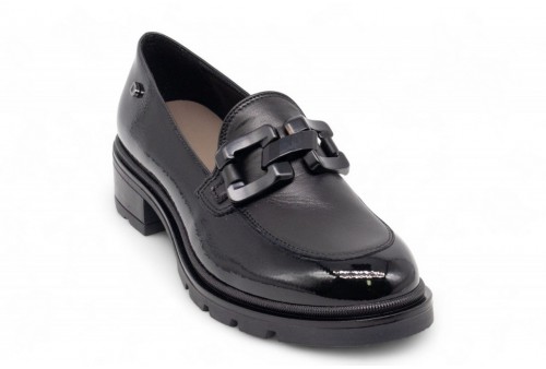 DONNA SERENA MOCASSINO IN NAPLACK. Mocassino realizzato in naplack e inserto in pelle . Accessorio sulla mascherina. Fondo gomma. Logo laterale. COLORE: nero