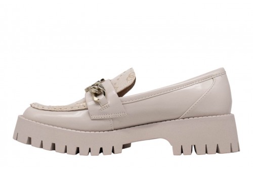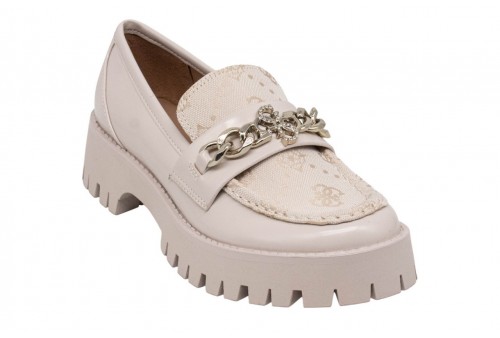 GUESS Mocassino Almer Con Catena. Mocassino in similpelle. Punta tonda. Altezza tacco: 4,3 cm. Altezza suola in gomma: 2,5 cm. Dettaglio catena sul davanti con logo 4G. Applicazione di strass.