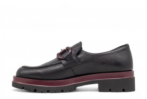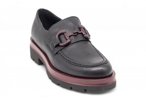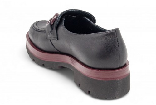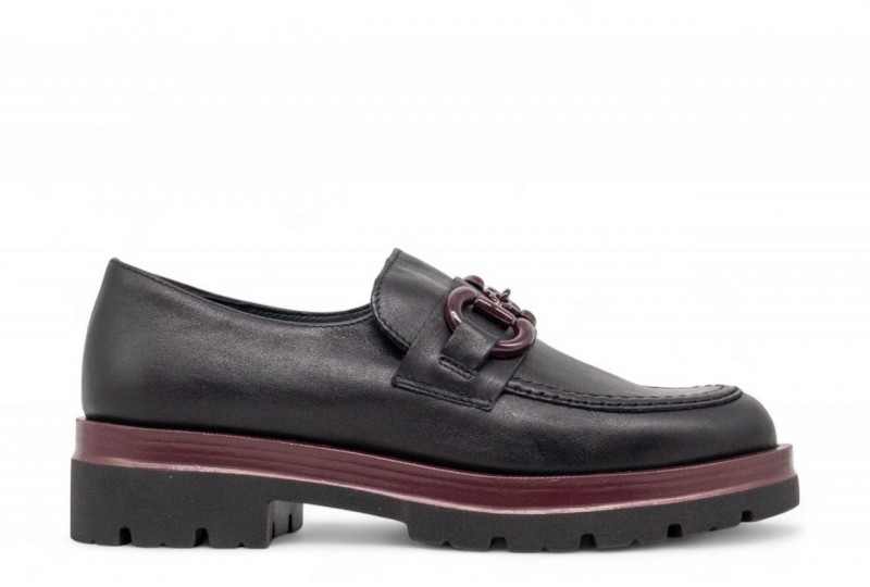 IGI E CO MOCASSINO IN PELLE. Mocassino realizzato in pelle con mascherina con catena. Fondo gomma. da infilare. Colore: nero/bordeaux