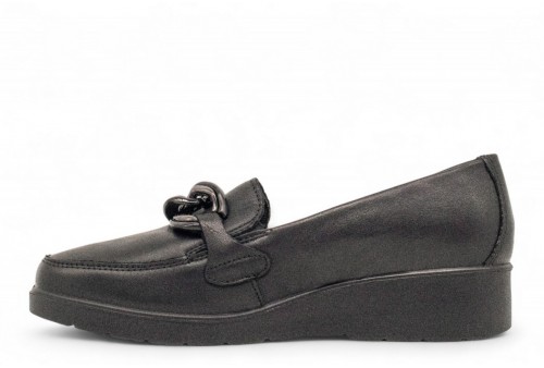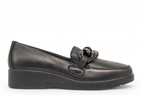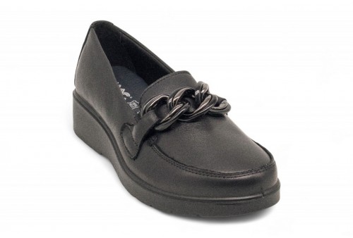 IMAC MOCASSINO CON ACCESSORIO. Mocassino con zeppa realizzato in pelle con accessorio decorativo tono su tono. COLORE: nero