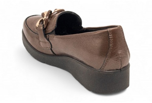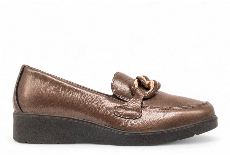 IMAC MOCASSINO CON ACCESSORIO. Mocassino con zeppa realizzato in pelle effetto vernice con accessorio decorativo a contrasto. COLORE: bronze/brown