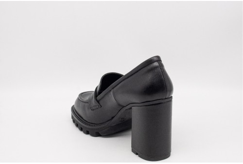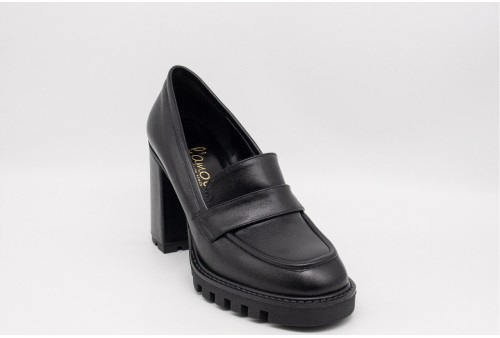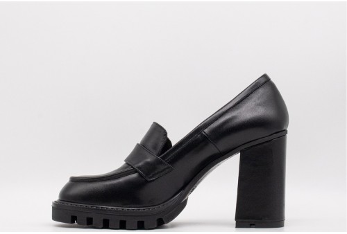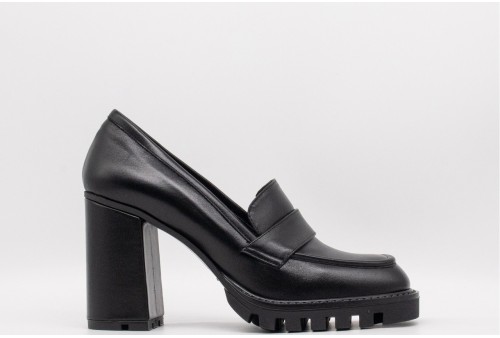 L'AMOUR Mocassino in pelle. Mocassino donna con punta rotonda in pelle colore nero, tacco a blocco alto e vaschetta su tono.