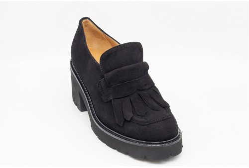 MOT-CLè Mocassino donna in camoscio. Mocassino donna in morbida pelle scamosciata con vaschetta e frange su tono.
