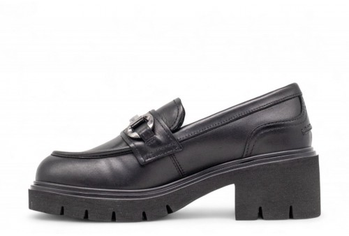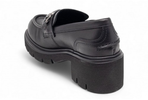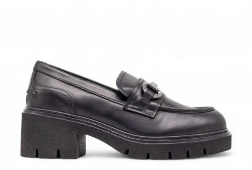 NERO GIARDINI mocassino in pelle. Mocassino donna realizzato in pelle con morsetto. Fondo in gomma dentellata . COLORE: nero