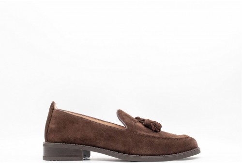 UNISA Mocassino con nappine. Mocassino a punta tonda realizzato in camoscio. Dettaglio nappine in camoscio in tono sul collo del piede. Suola in gomma leggera, flessibile e antiscivolo.