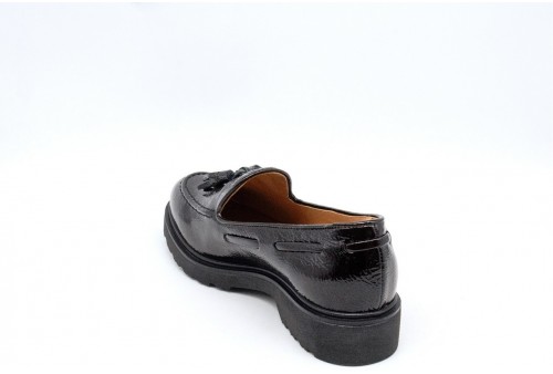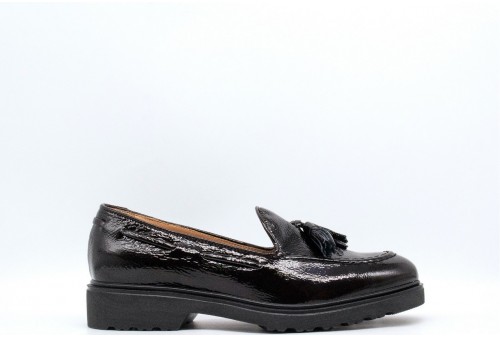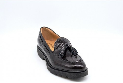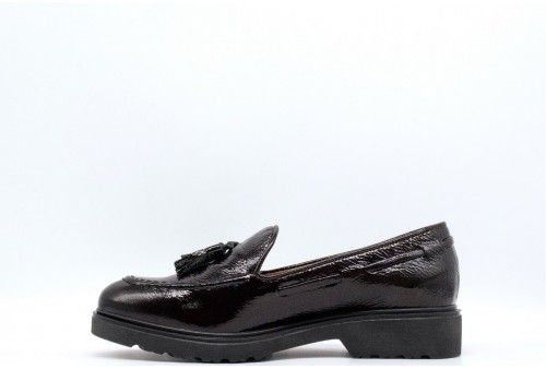 VSL MOCASSINO CON NAPPINE. Mocassino in vernice con nappine. Punta rotonda. COLORE: MORO