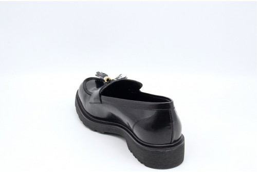 VSL MOCASSINO CON NAPPINE. Mocassino in vernice con nappine. Punta rotonda. COLORE: NERO