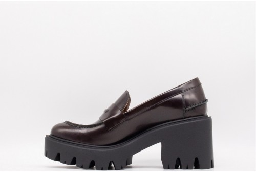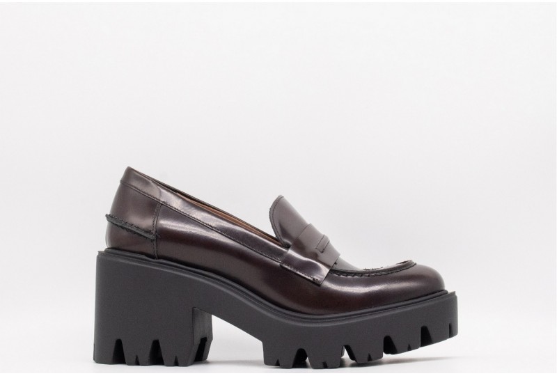 VSL Mocassino donna con tacco. Mocassino donna in pelle caratterizzato da tomaia con vaschetta su tono e tacco a blocco.