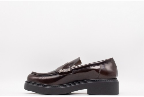 VSL Mocassino donna in pelle. Mocassino donna in pelle caratterizzato da tomaia liscia con vaschetta su tono e sei borchie decorative.