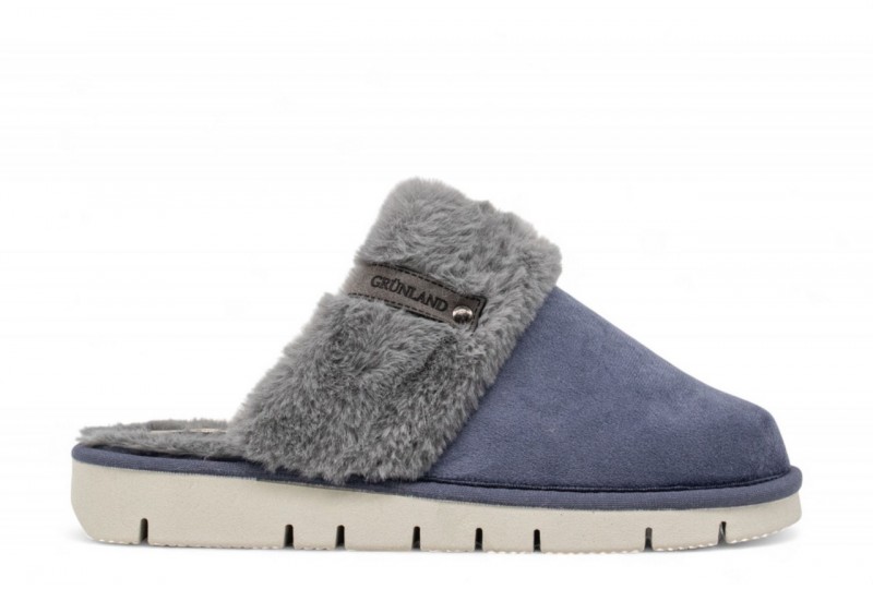 GRUNLAND Ciabatta con eco pelliccia | LOXI. Ciabatta in morbido scamosciato con fascia in peluche sul collo del piede. Presenta una forma innovativa per accogliere il piede e restituirgli una piacevole sensazione di relax. Il sottopiede Re-Soft ammortizza l’impatto al suolo e memorizza la forma del piede; mentre, la suola Grünland Conforma è in grado di adattarsi al tuo modo di camminare. È un prodotto Made in Italy, con design made in Grünland.