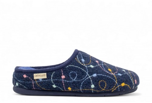 GRUNLAND Ciabatta con ricami | IRRA. Morbida e calda tomaia in feltro, leggera zeppetta per sostenere l’arcata plantare e la postura, questi sono i punti di forza della nostra ciabatta home IRRA. Inoltre, la suola Grünland Conforma la rende comoda e flessibile, in grado di adattarsi al tuo modo di camminare.