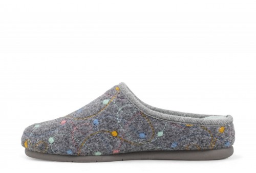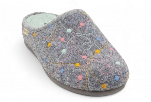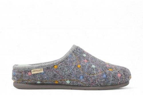 GRUNLAND Ciabatta con ricami | IRRA. Morbida e calda tomaia in feltro, leggera zeppetta per sostenere l’arcata plantare e la postura, questi sono i punti di forza della nostra ciabatta home IRRA. Inoltre, la suola Grünland Conforma la rende comoda e flessibile, in grado di adattarsi al tuo modo di camminare.