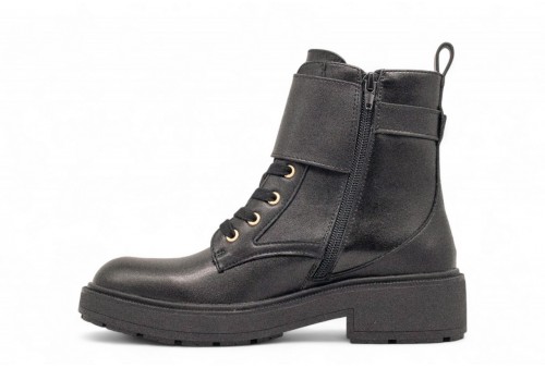 LIU JO Anfibi in pelle. Anfibi in pelle con fibbia con logo monogram smaltat.o Chiusura con zip interna. Lacci piatti. Suola in gomma con dettaglio logo.