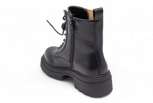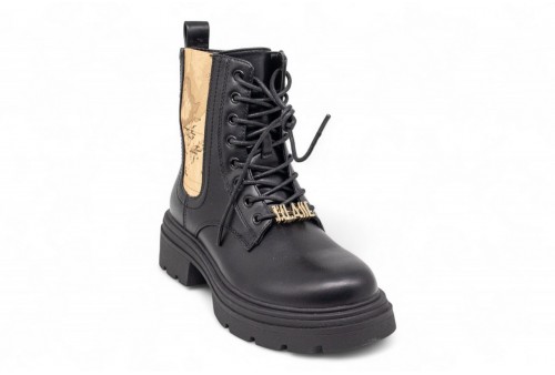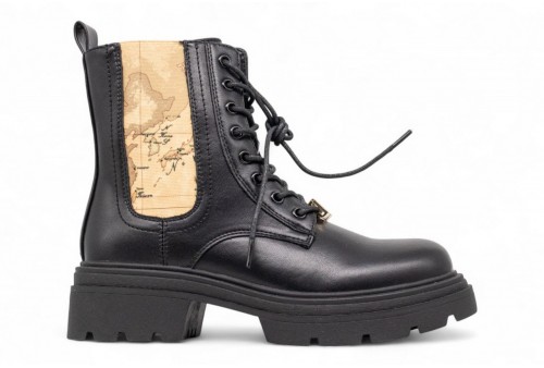ALVIERO MARTINI ANFIBIO IN PELLE. Anfibio donna realizzato in pelle con inserto elastico laterale. Logo 1 CLASSE. Fodera in pelle. Sottopiede in pelle. Suola in gomma track. Chiusura con lacci e zip laterale. COLORE: nero