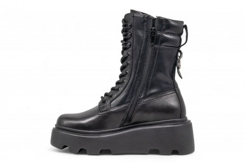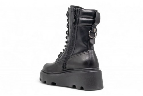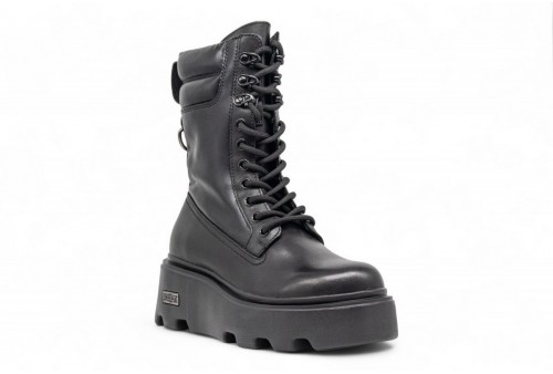 CULT ANFIBIO MID NEW ROCK 4570. Anfibio mid stringato new rock,silhouette tonda. Realizzato mix pelle e gambale stretch.Poggia su suola chunky.Dettagli metallici e logo Cult placca laterale.