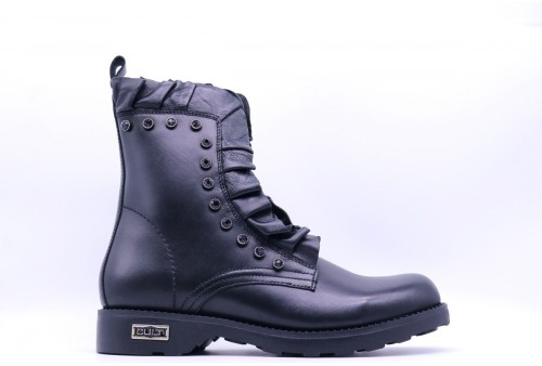 CULT ANFIBIO ZEPPELIN CON ROUCHES. Comodi ma senza rinunciare all'anima rock gli anfibi stringati firmati da Cult per questo inverno. Un modello intramontabile di stivaletti in pelle, con occhielli in metallo, impreziositi da rouches a e linguetta posteriore. Da indossare con jeans, pantaloni o gonne.colore: nero