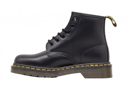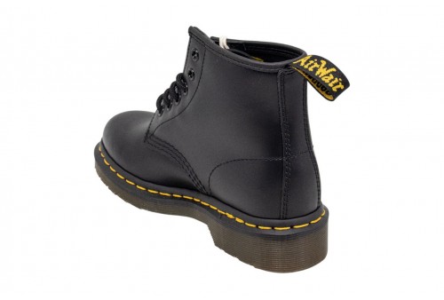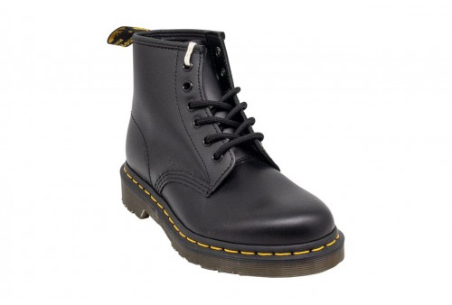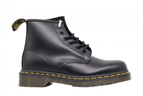 DR. MARTENS ANFIBIO 101 in pelle Smooth con cuciture gialle. Con due occhielli in meno rispetto all'iconica silhouette 1460, poggia su una robusta suola a cuscinetto ed è rifinito con una fettuccia posteriore con logo AirWair.