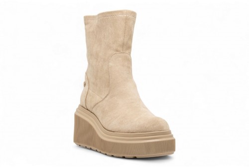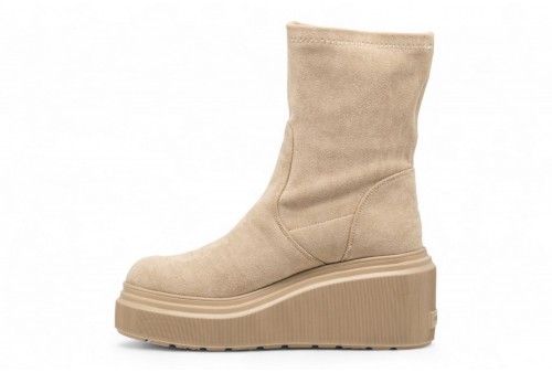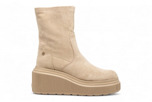 JANET E JANET STIVALETTO IN CAMOSCIO. Stivaletto con zeppa realizzato in camoscio.Logo laterale. Suola in gomma. COLORE: beige