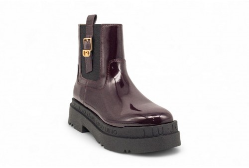 Stivaletti platform in vernice. Stivaletti con tomaia in vernice Chiusura con zip sul lato interno Inserto elastico Fibbia decorativa con logo monogram Suola platform con logo inciso.
