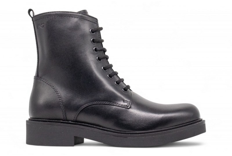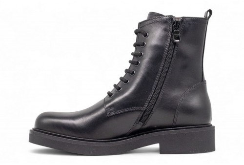 NERO GIARDINI anfibio donna in pelle. Anfibio realizzato in pelle con lacci e pratica zip laterale. Fondo in gomma . COLORE: nero