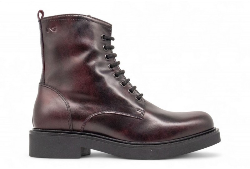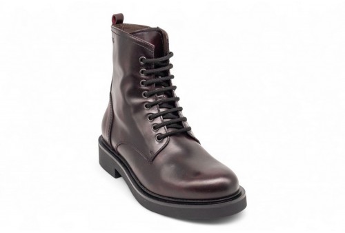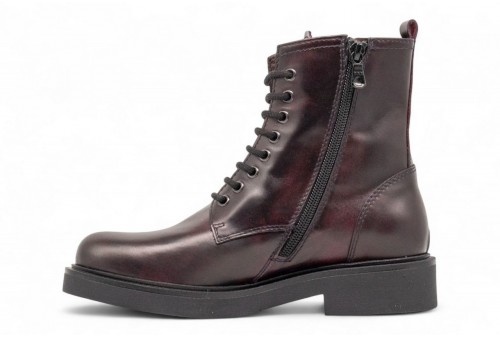 NERO GIARDINI anfibio donna in pelle. Anfibio realizzato in pelle con lacci e pratica zip laterale. Fondo in gomma . COLORE: bordeaux