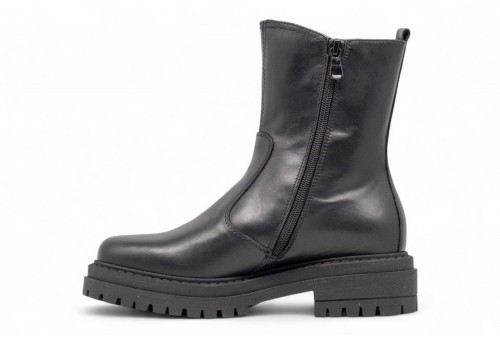 NERO GIARDINI stivaletto in pelle. Stivaletto realizzato in pelle con inserto elastico laterale. Dettaglio fibbia laterale.Chiusura con zip. Fondo in gomma dentellato. COLORE: nero
