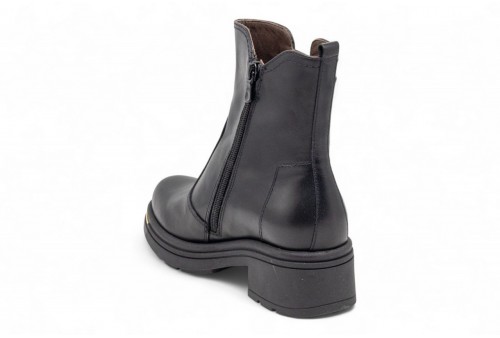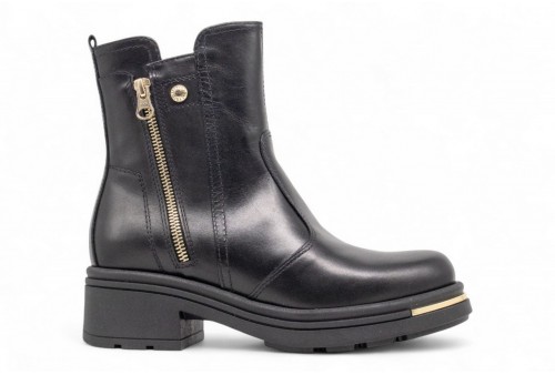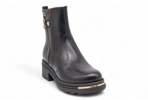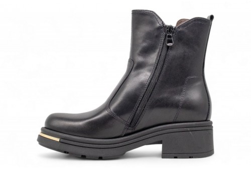 NERO GIARDINI stivaletto in pelle. Stivaletto realizzato in pelle con dettaglio zip laterale dorata.Chiusura con zip . Fondo in gomma dentellato. COLORE: nero