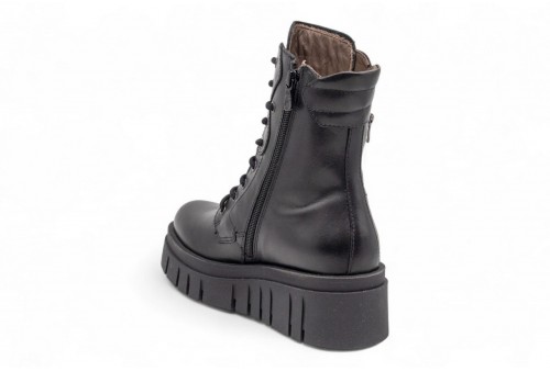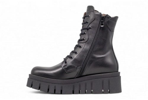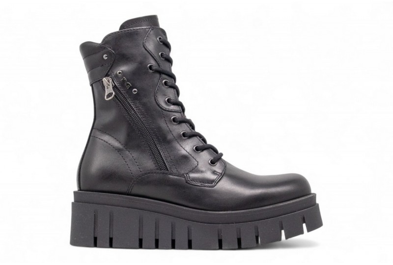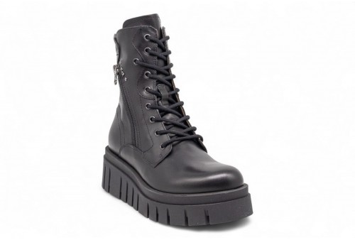 NERO GIARDINI anfibio in pelle. Anfibio con zeppa realizzato in pelle con dettaglio zip decorativa laterale.Chiusura con zip . Fondo in gomma .COLORE: nero