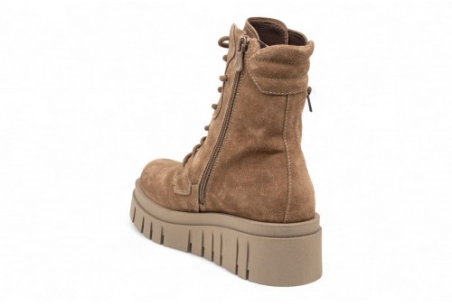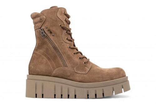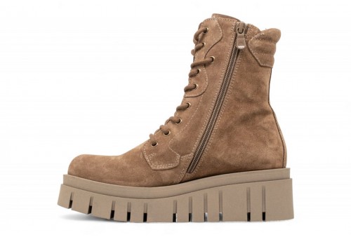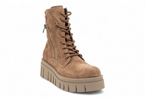NERO GIARDINI anfibio in pelle. Anfibio con zeppa realizzato in pelle scamosciata con dettaglio zip decorativa laterale.Chiusura con zip . Fondo in gomma .COLORE: mou
