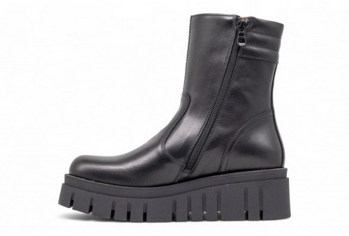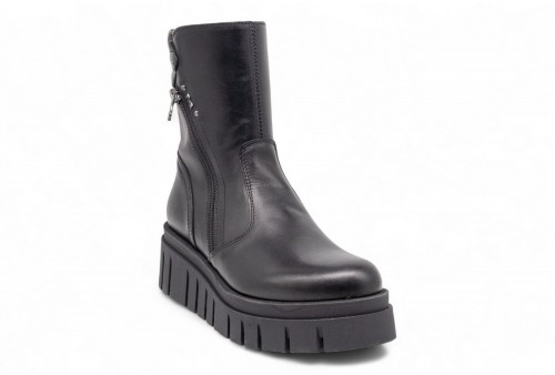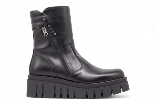 NERO GIARDINI stivaletto in pelle. Stivaletto con zeppa realizzato in pelle con dettaglio zip decorativa laterale.Chiusura con zip . Fondo in gomma .COLORE: nero