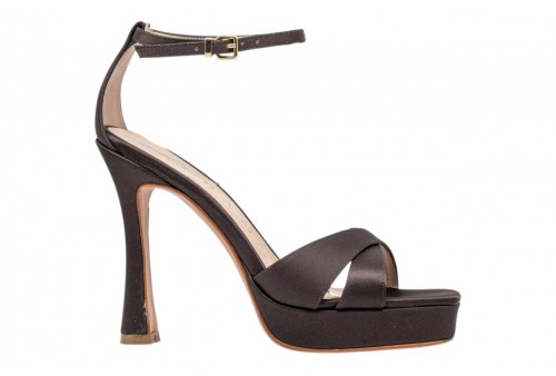 ALBANO sandalo 5508 RASO t. moro. Sandalo tacco alto con tomaia in raso con listini incrociati. Chiusura con cinturino regolabile alla caviglia.
