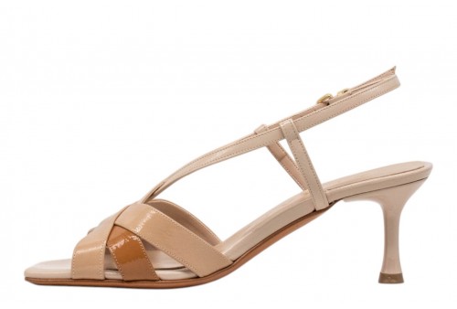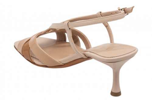 ALBANO SANDALO 5539 NAPLAK NUDE. Sandalo con tacco realizzato in naplak con listini incrociati nude/cuoio. Chiusura con cinturino regolabile alla caviglia.