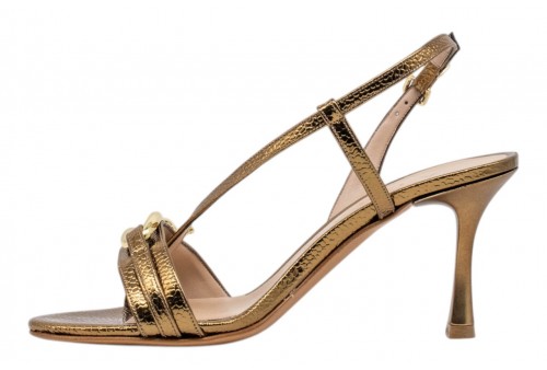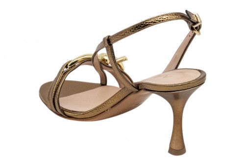 ALBANO SANDALO 5552 SNAKE BRONZO. Sandalo tacco alto realizzato in pelle effetto snake con listini incrociati e accessorio in metallo dorato. Chiusura con cinturino regolabile alla caviglia.