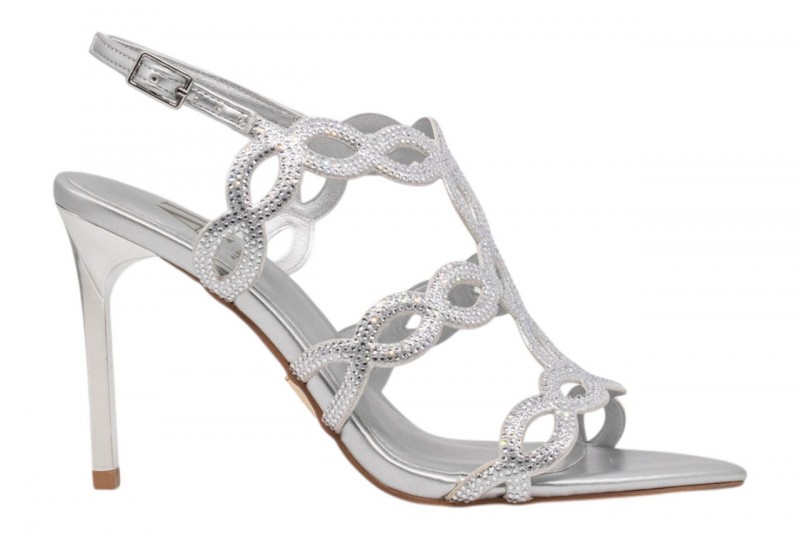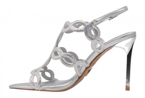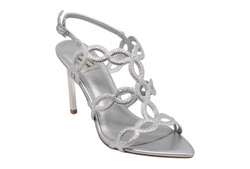 ALBANO VANITY AV7008 SANDALO elegante ARGENTO. Sandalo elegante a punta realizzato in ecopelle effetto laminato e impreziosito da fasce ricoperte da strass. Chiusura con cinturino regolabile con fibbia alla caviglia.