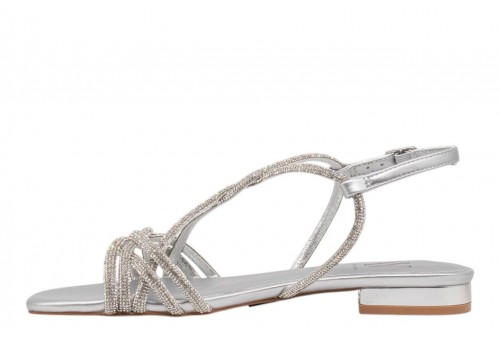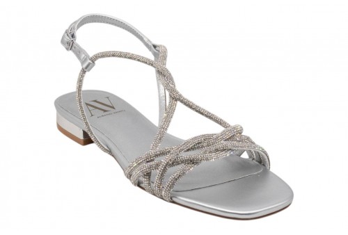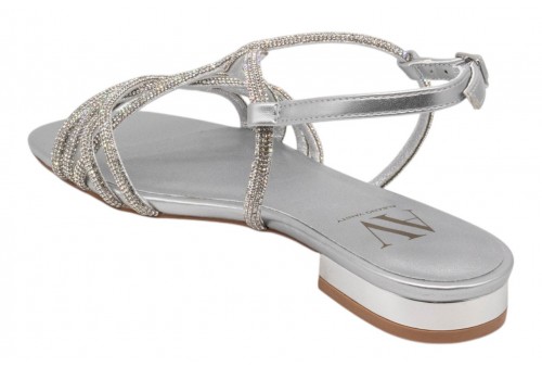 ALBANO VANITY AV7034 SANDALO FLAT ARGENTO. Sandalo flat elegante con fasce incrociate ricoperte di strass. Chiusura con cinturino con fibbia regolabile alla caviglia.