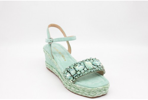 ALMA EN PENA Fascia strass a mezza zeppa. Sandalo da donna con zeppa con intreccio e cinturino largo. Punta quadrata. Suola imbottita, chiusura con fibbia e altezza tacco 6,5 cm.