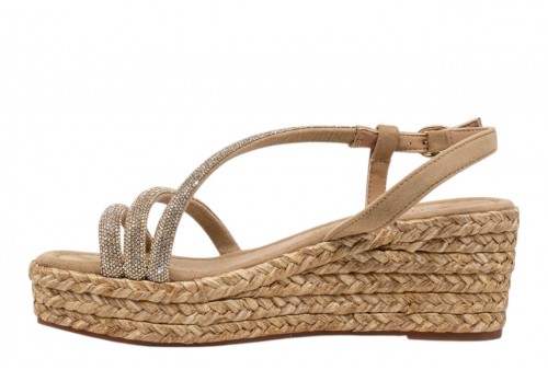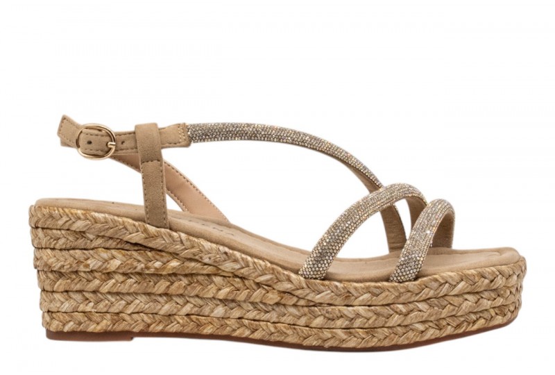 ALMA EN PENA sandalo con zeppa V2650750 SIENA SAND. Sandalo con zeppa in iuta,caratterizzato da listini incrociati ricoperti di strass. Chiusura con cinturino regolabile alla caviglia.