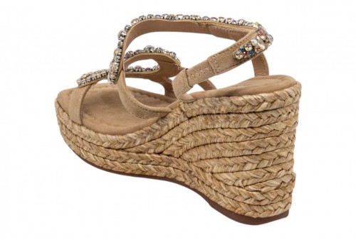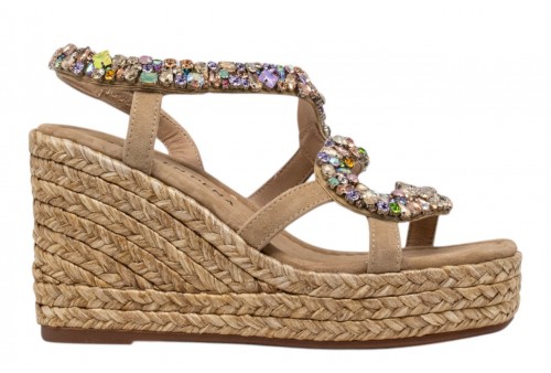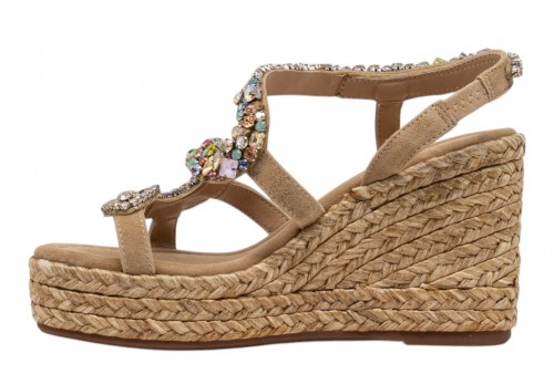 ALMA EN PENA sandalo con zeppa V266052 SUEDE SAND. Sandalo con zeppa in iuta realizzato in pelle scamosciata e impreziosito da listini con applicazioni gioiello.Inserto elastico alla caviglia per facilitarne la calzata.