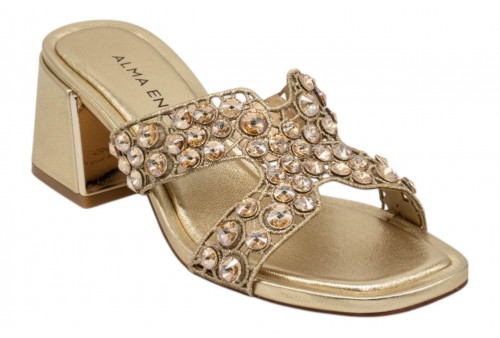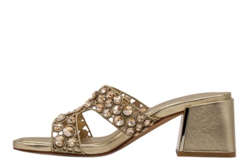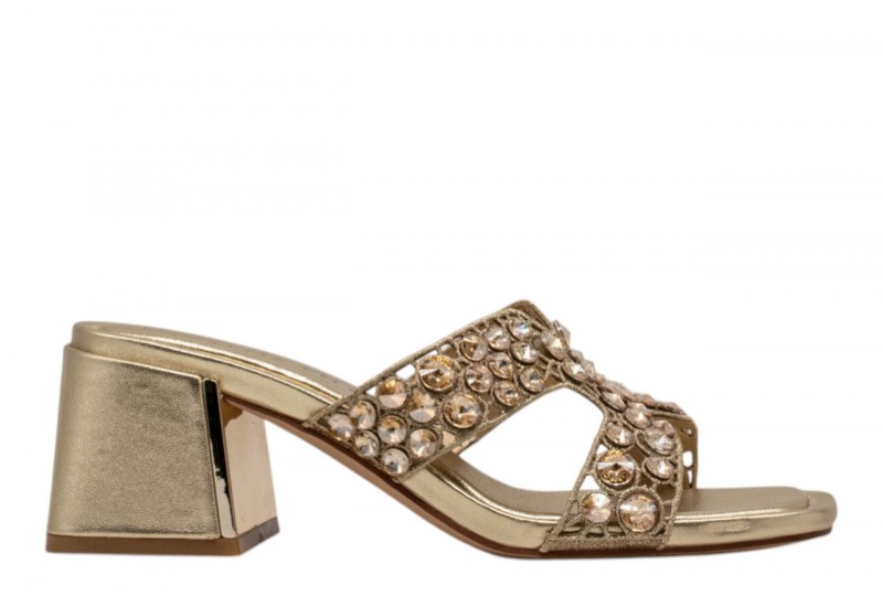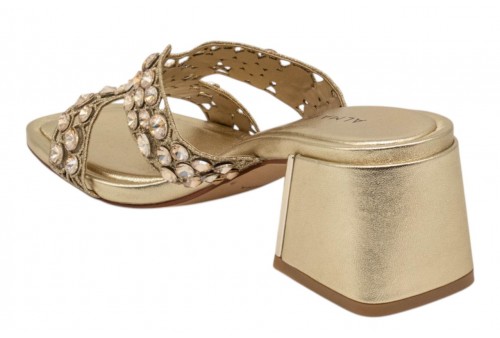 ALMA EN PENA sandalo V263100 DIVA GOLD. Sandalo scalzato con cristalli decorativi.