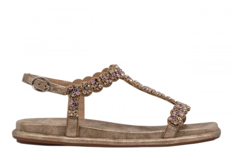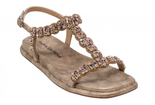 ALMA EN PENA sandalo V2651505 OPORTO BRONZE. Sandalo basso con dettagli gioiello sulla tomaia. Chiusura con cinturino regolabile alla caviglia.