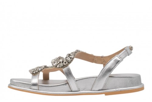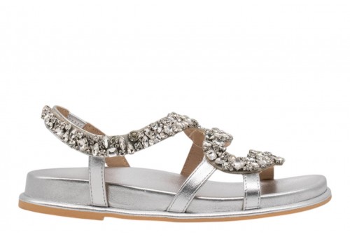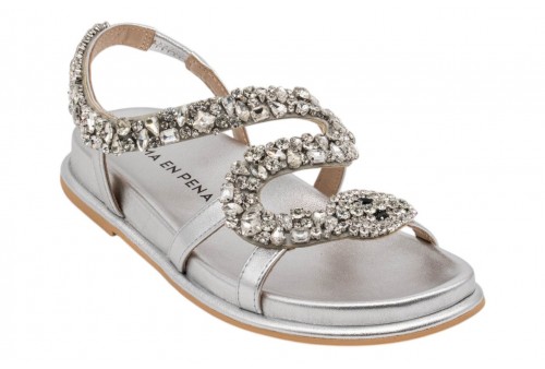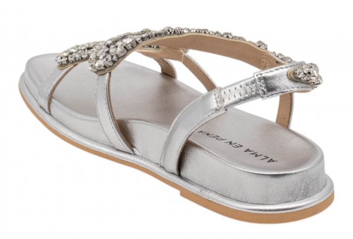 ALMA EN PENA SANDALO V267104 DIVA SILVER. Sandalo basso realizzato in materiale effetto pelle laminata e impreziosito da serpente rivestito di cristalli gioiello. Cinturino con inserto elastico.