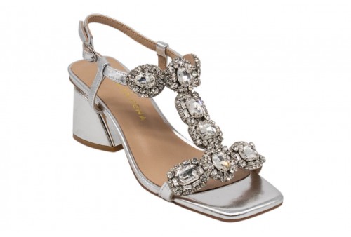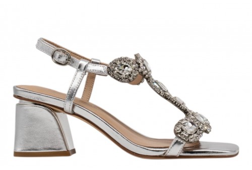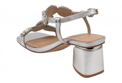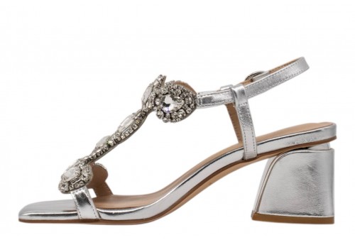 ALMA EN PENA V263050 DIVA SILVER. Sandalo realizzato in pelle laminata e impreziosito da listini con applicazioni gioiello. Chiusura con cinturino regolabile alla caviglia. Tacco a blocco.