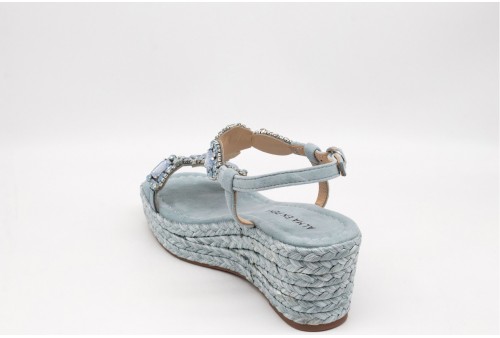 ALMA EN PENA Zeppa con applicazioni gioiello. Sandalo con zeppa impreziosito da applicazioni gioiello. Chiusura con cinturino regolabile alla caviglia. Punta quadrata. Colore: jeans.