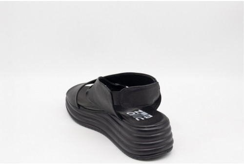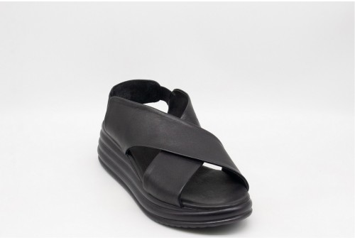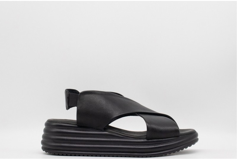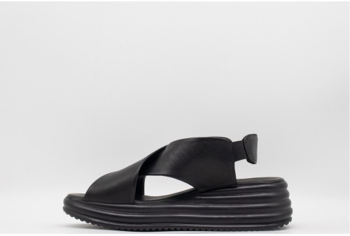 BUENO SANDALO in pelle. Sandalo realizzato in pelle con fasce incrociate. Chiusura con cinturino con inserto elastico. COLORE: nero